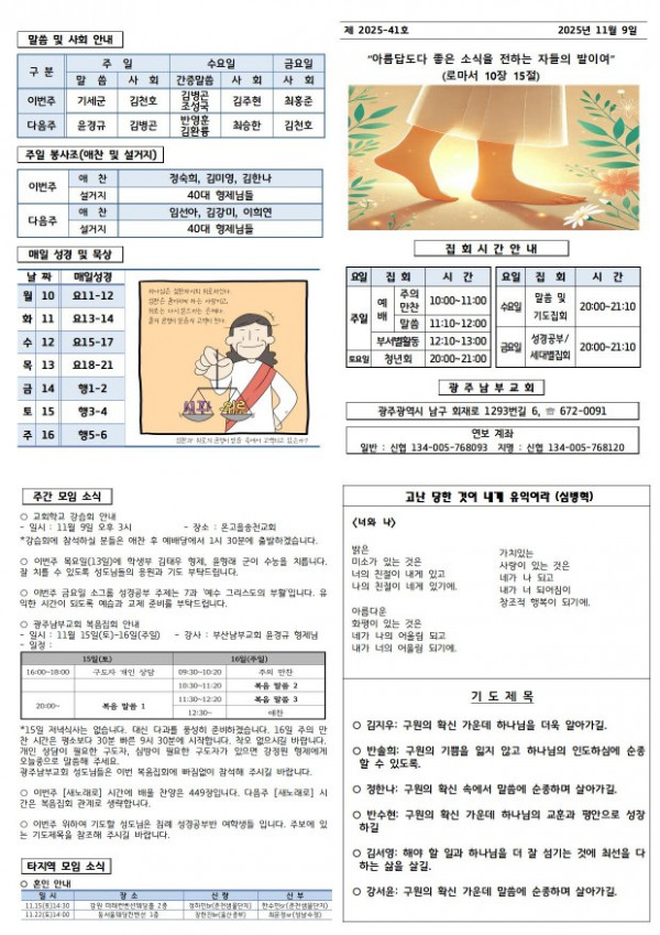 교회주보 2025년 11월 둘째주 주보 페이지 정보 작성일 11월 09일 2025년 본문 2025년 11월 둘째주 주보입니다. 목록 이전글 교회주보 2025년 11월 셋째주 주보 11월 09일 2025년 다음글 교회주보 2025년 11월 첫째주 주보 11월 09일 2025년